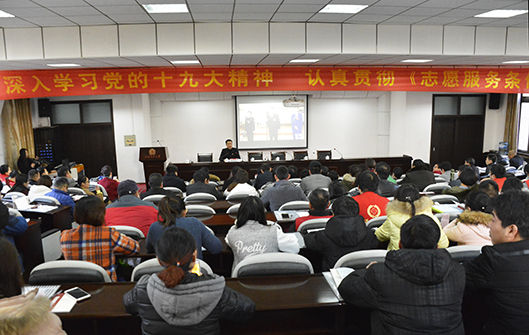 十九大代表、裴寨社区党总支书记裴春亮作了题为“听党话、跟党走、同创业、共致富,做一个有理想有担当的新时代农民”的报告,宣讲了十九大精神,表达了对党的感情和“听党话、跟党走、同创业、共致富,做新时代有理想、有担当新农民”的决心。他结合自身少年时期“吃百家饭,穿百家衣”的成长历程,讲述了作为农村基层党支部书记多年来帮助乡亲共同富裕奔小康的奋斗历程。裴春亮呼吁大家要以贯彻落实省委十届四次全体(扩大)会议精神为契机,深入学习贯彻党的十九大精神,谱写全面建成小康社会的新篇章。他表示,要与广大志愿者一起,不忘初心,积极投身社会主义新时代伟大实践活动,为文明新乡增光添彩。我校社会事业学院党委书记魏雷东对国务院颁布和实施的《志愿服务条例》进行了解读,作了题为“中国特色志愿服务制度建构与发展走向”的报告。他由《志愿服务条例》出台的意义出发,着重分析了《志愿服务条例》内容中的主要亮点,并从志愿者身份、志愿者服务区域等角度阐述了志愿服务的发展走向。