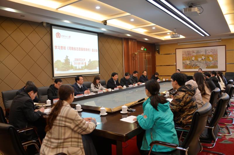 3月1日下午,我校学习贯彻《河南省志愿服务条例》座谈会在勤政楼第三会议室召开。党委副书记陈广文出席,党委常委、宣传部长聂立清主持,新乡市文明办、校文明委成员单位和公益社团负责人、师生代表40余人参会。