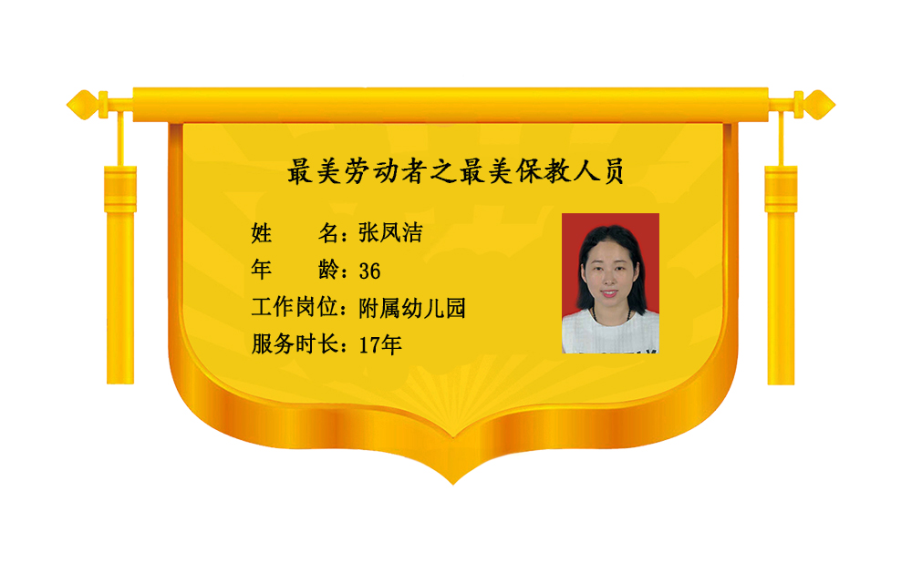 张凤洁自2002年参加工作,17年来她始终坚守着幼教岗位,以师者本分要求自己,稳中有序、不骄不躁地做好保育、教育等各项工作。她刻苦钻研业务,推进教学改革,多项成果获奖。课堂上、宿舍里、操场上我们都能看到她认真执教的身影,听到她嘘寒问暖的声音,6000多个日日夜夜她用活力、热情、和耐心努力耕耘,以智慧、理解、责任、细心去读懂每一个孩子、每一个家庭。