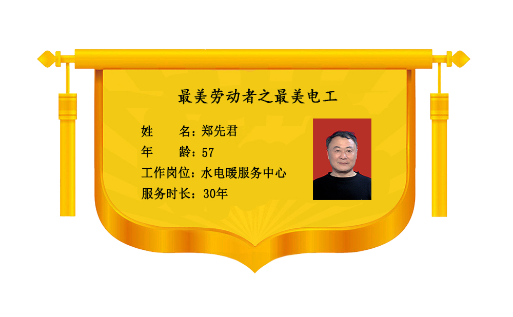 郑先君,男,汉族,河南固始人,1962年8月生,现任水电暖服务中心电工。