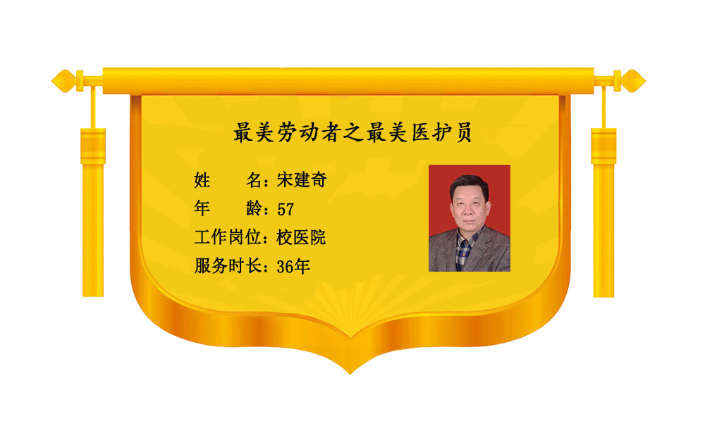 从医36年,一万多个日日夜夜,每一次坐诊、每一次查房,宋建奇忠实履行着作为一名医务人员的神圣职责,以实际行动诠释了医者仁心的深刻内涵,为无数师生解除了病痛。百忙中,他还仍不忘深造学习、教导学生,不断攀登技术的高峰、敢为人先,并且用宽宏的胸怀将自己的行医知识经验不断传承下去。他认为,一个好医生,不仅要有精湛的医术,更要有高尚的医德,从医者要用热心、耐心、精心、细心赢得患者的信任与尊重。