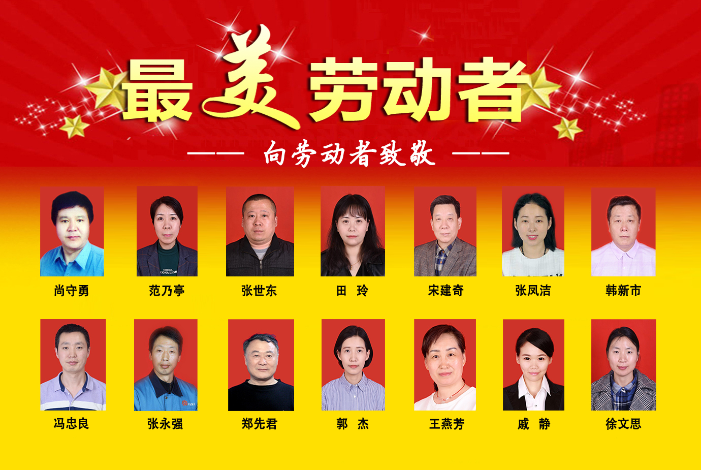 为庆祝五一国际劳动节的到来,党委宣传部、校文明办面向全校基层一线劳动者,经发布公告、广泛宣传、个人申报、单位推荐、材料审核等环节,综合评选出14名学校“最美劳动者”,他们是:最美保安员尚守勇,最美宿管员范乃亭,最美炊事员张世东,最美医护员宋建奇,最美保教人员田玲、张凤洁,最美图书管理员韩新市,最美设备管理员冯忠良,最美园林绿化工张永强,最美电工郑先君,最美会务员郭杰,最美楼管员王燕芳,最美安保员戚静,最美财务员徐文思。他们爱岗敬业、忠于职守,技能娴熟、业务精湛,工作勤奋、成绩突出,服务到位、保障有力,公认评价高、群众口碑好,得到所在单位和服务保障对象的一致好评。他们牢固树立以校为家理念,不断强化主人翁意识,以高度的责任感和使命感,坚守平凡的岗位,提供贴心的服务,做出不凡的业绩,是我校广大基层一线普通劳动者的优秀代表,是共建共享美好师大的先进典型,是新时代劳动创造价值的模范人物。
