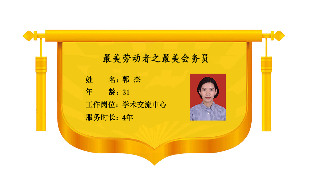 郭杰,女,汉族,河南新乡人,1988年5月生,现任学术交流中心会议主管。