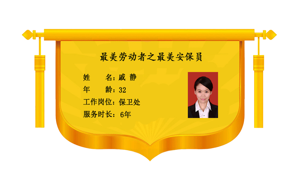 戚静,女,汉族,河南新乡人,中共党员,1987年1月生,现任保卫处政保科安保员。