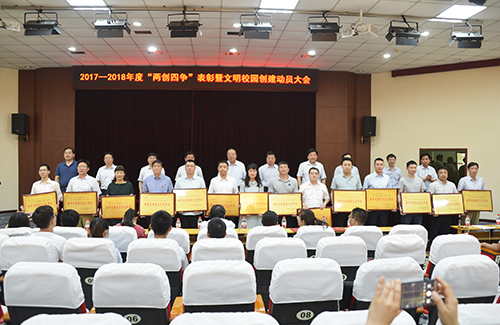 会上,校党委副书记、工会主席臧振春宣读了《伟德官网下载苹果版精神文明建设委员会关于表彰2017-2018年度精神文明建设先进集体、先进个人的决定》。会议对2017-2018年度“两创四争”中踊现出的14个精神文明建设先进单位、41个文明班级、187名文明教师、文明干部、文明工人以及1284名文明学生进行了表彰。