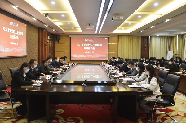 10月17日下午,我校在勤政楼第三会议室召开学习贯彻党的二十大精神座谈会。校党委书记、校长王宗敏出席会议并讲话,会议由党委副书记、工会主席梅宪宾主持,学校相关职能部门代表,教师和学生代表参加座谈会。