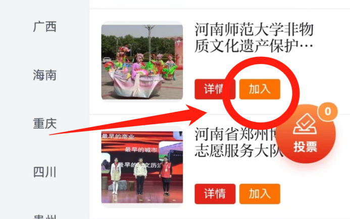 5.点击“加入”,勾选含非遗在内的10个候选典型并投票即可: