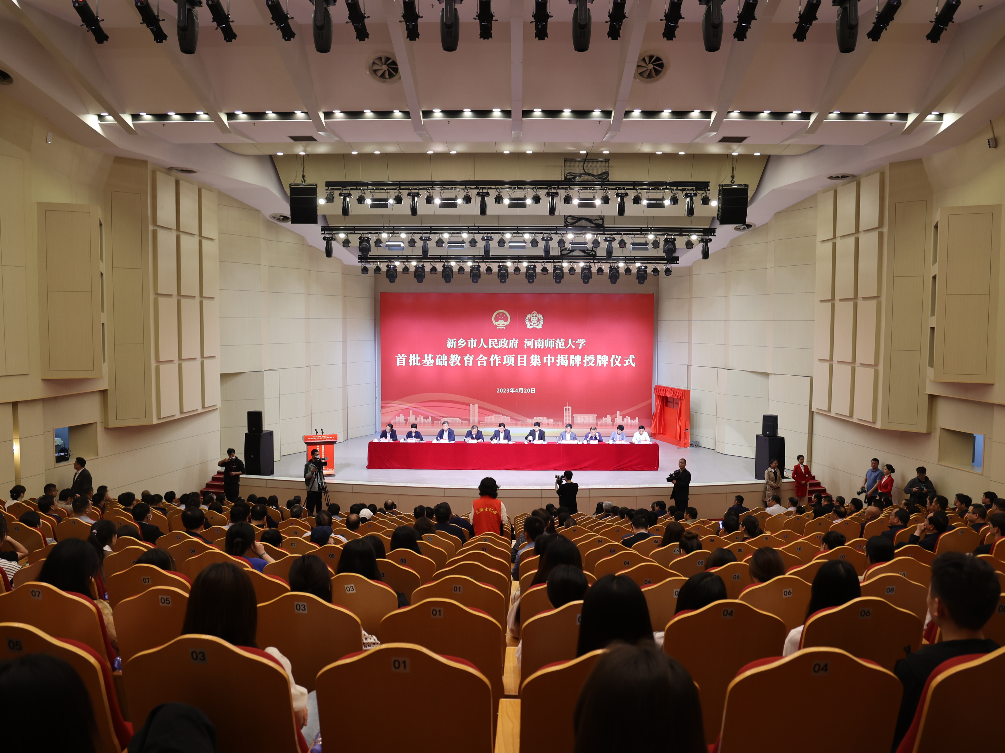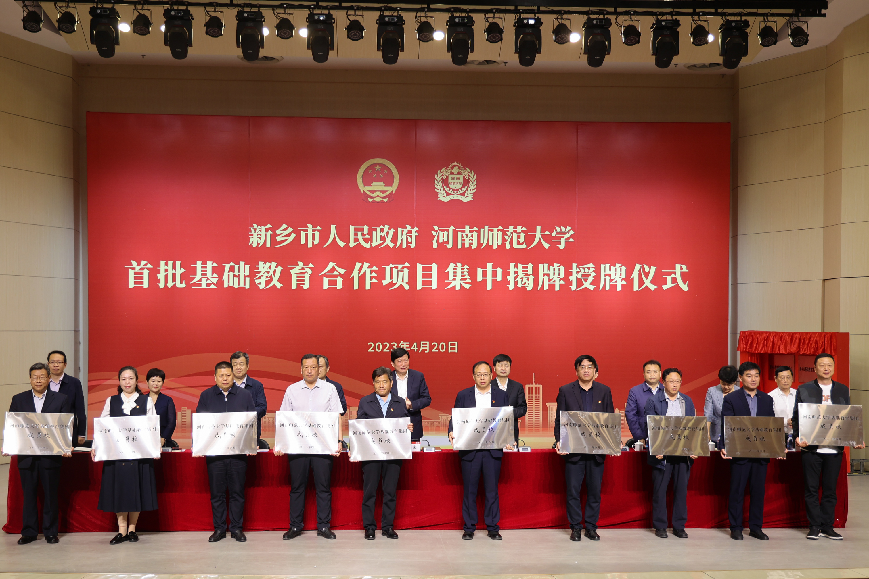 4月20日上午,我校与新乡市人民政府首批基础教育合作项目集中揭牌授牌仪式在帕瓦罗蒂音乐艺术中心举行。新乡市委书记李卫东,校党委书记、校长王宗敏出席仪式并讲话。新乡市有关领导、部分驻新高校、市直有关单位、各县(市)、区及高新区、经开区、平原示范区党委(党工委)和我校主要负责人及有关中小学主要负责人参加。仪式由市委常委、市政府常务副市长孙栋主持。