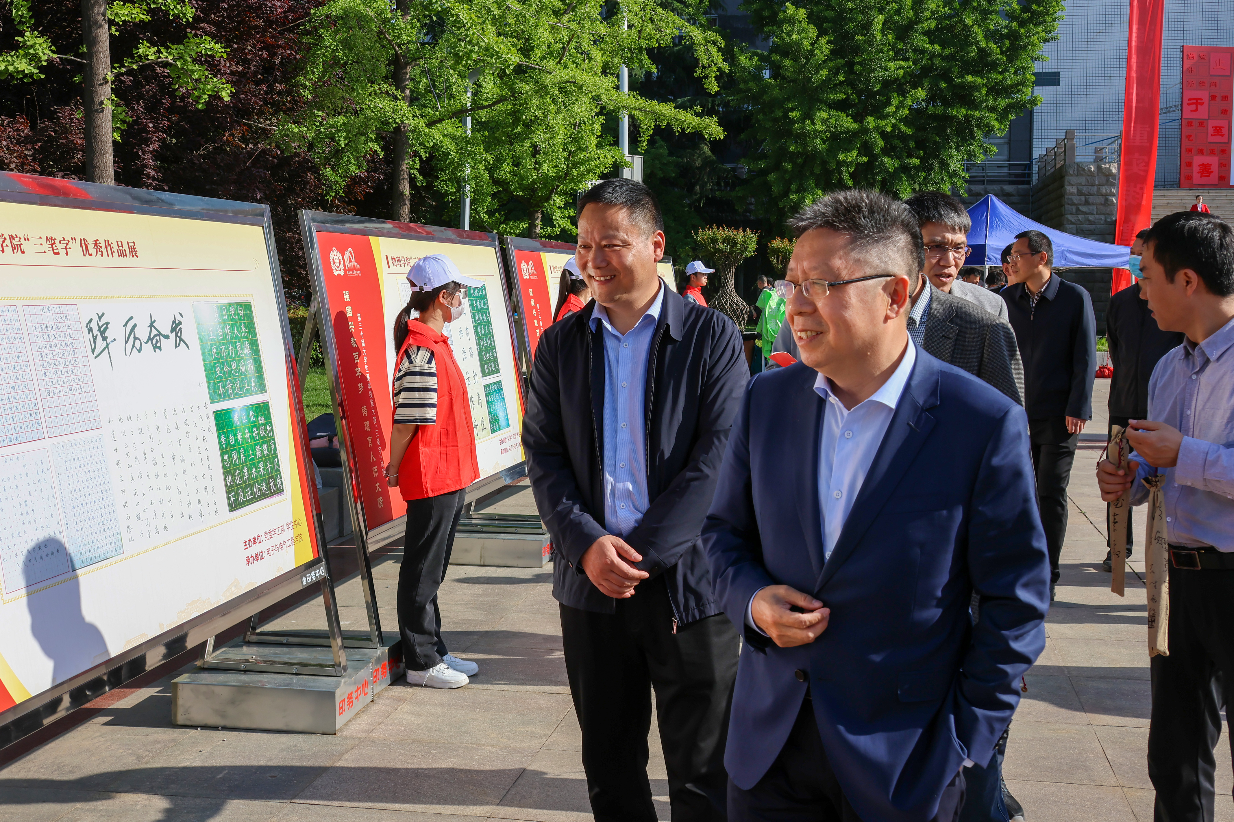 开幕式后,马治军同与会嘉宾到展览区观看各学院(部)学生优秀书法作品展,到创作区观摩指导选手比赛。30年前,一场旨在促学风、比学习、练本领的赛事,在我校拉开了帷幕。30年来,大学生基本技能大赛在传承中创新,在创新中发展,在发展中成长,成为师大学子练就过硬本领、提升自身技能的重要阵地,荣获教育部高校思想政治工作精品项目、河南省高等学校思想政治工作优秀品牌等荣誉。