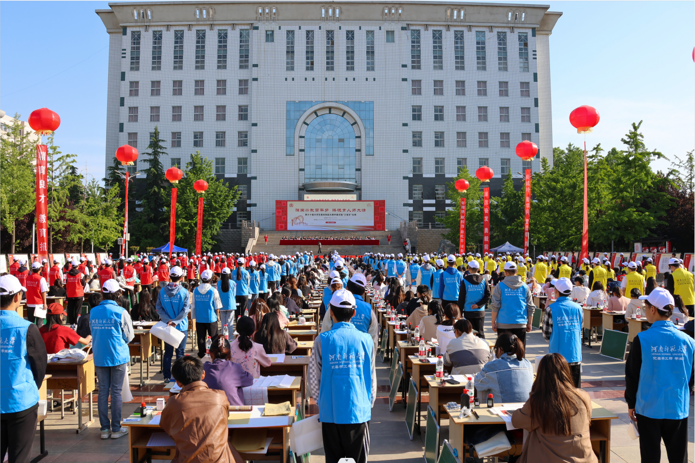翰墨飘香展芳华,强国兴教育桃李。5月7日上午,我校第三十届大学生基本技能大赛开幕式暨“三笔字”比赛在图书馆前广场举行。校党委常委、副校长马治军出席开幕式并致辞,相关职能部门负责人,各学院(部)党委(党总支)副书记、团委书记、参赛选手、志愿者参加开幕式。党委学工部部长葛照金主持开幕式。