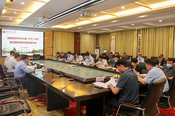 5月24日下午,我校在勤政楼第三会议室召开党委理论学习中心组(扩大)学习暨主题教育读书班交流研讨会,本次会议主题是“学习习近平总书记关于人才培养的重要论述”。省委第二十三巡回指导组组长王建民等一行4人到会旁听指导。校党委书记、校长王宗敏主持会议并讲话。校党委理论学习中心组成员、学校思想政治工作领导小组成员参加学习。