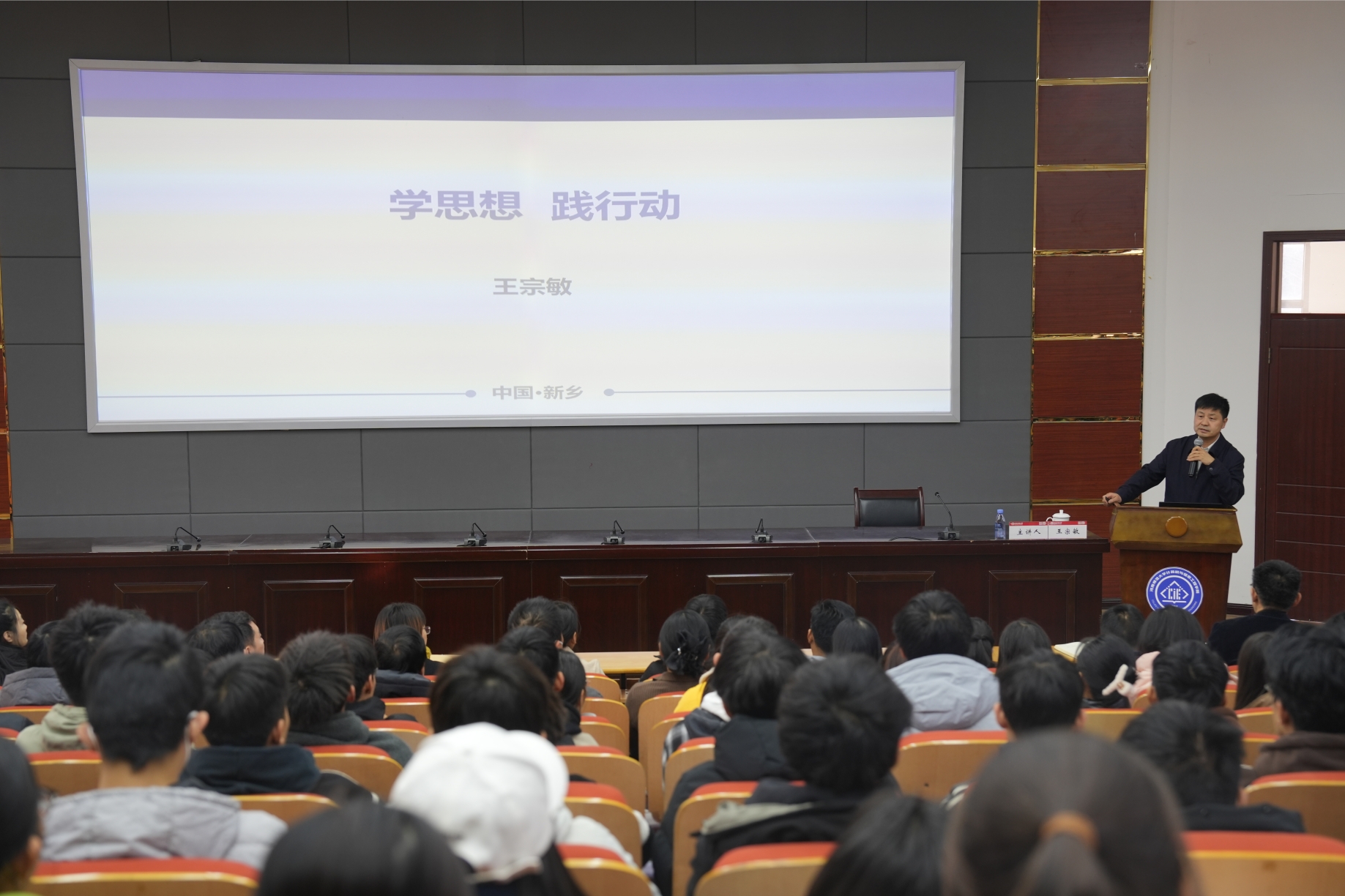 12月8日,校党委书记王宗敏在计算机楼217报告厅为计算机与信息工程学院师生讲授思政课。