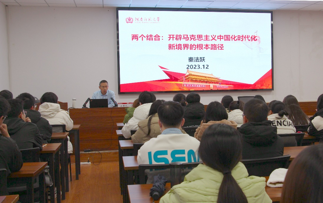 12月12日下午,校长冯淑霞在数学楼103教室为数学与信息科学学院师生代表讲授思政课。
