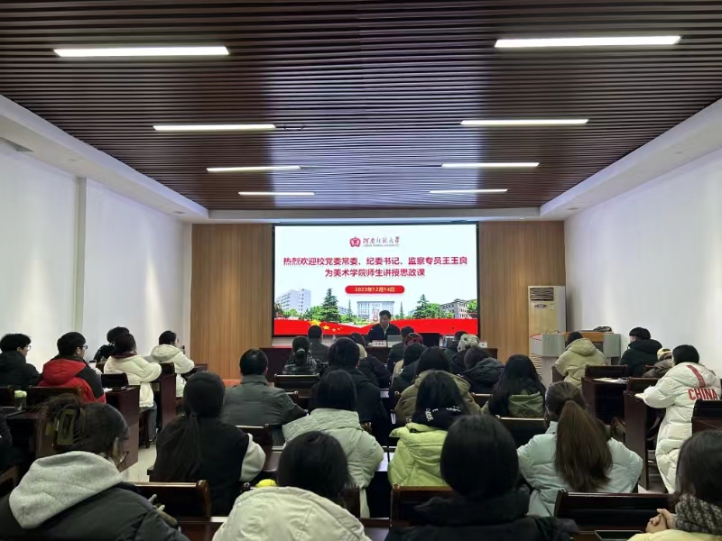 12月14日下午,校党委常委、纪委书记、监察专员王玉良在美术学院办公楼会议室为美术学院师生讲授思政课,学院师生代表现场聆听。思政课由美术学院党委书记华锋主持。