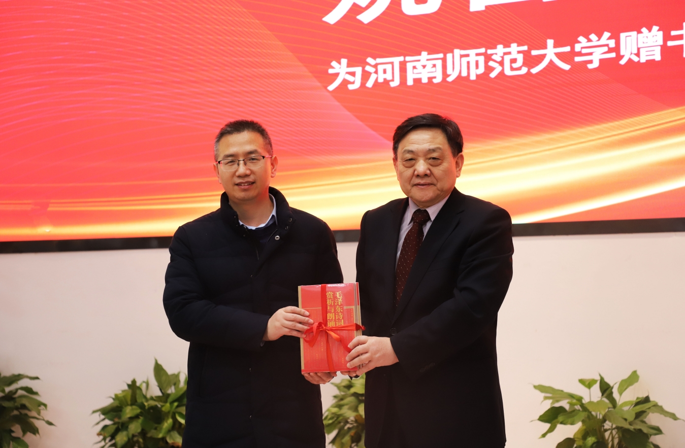 秦法跃代表学校对姚喜双教授的新书出版表示祝贺。他指出,姚喜双教授《毛泽东诗词赏析与朗诵》在毛泽东同志诞辰130周年之际出版是对毛泽东同志的深情致敬,对我校红色文化育人具有重要意义。《毛泽东诗词赏析与朗诵》一书在赏析与解读的基础上,提出诗词朗诵方法和建议,能够帮助师生更加深入地理解和感受毛泽东诗词中的情感和意境,领会其深刻的文学、艺术和审美内涵,更好地重温革命伟人的经典之作,涵养不懈追求、砥砺奋进的精神气度。