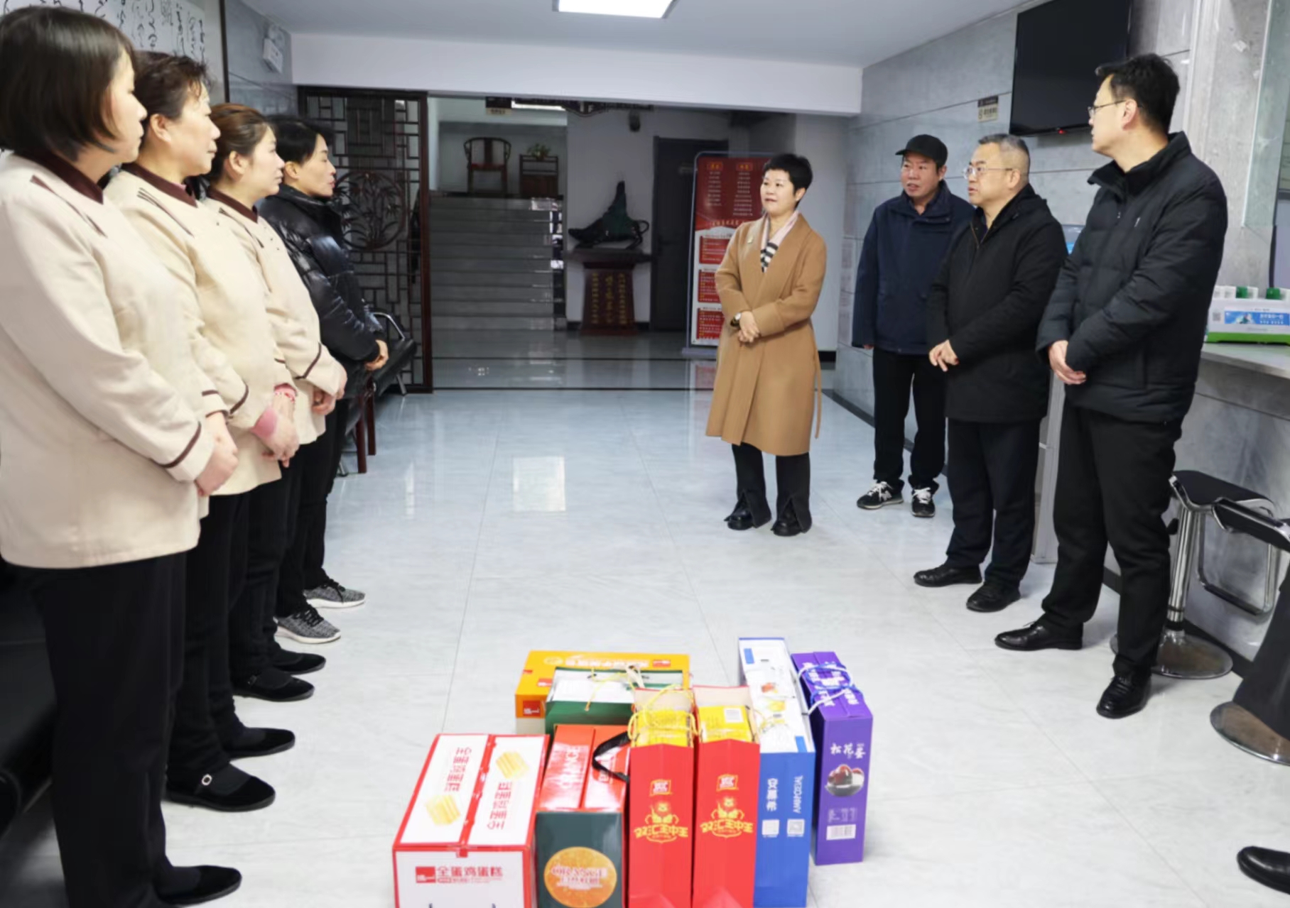 校领导一行先后来到总值班室、保卫处、后勤管理处、资产经营有限公司、附属中学、校医院、平原湖校区等单位进行慰问,详细询问了各单位值班人员安排、来电来访处理、应急预案处置等情况,了解了相关部门春节假期的安全保卫、后勤保障、餐饮住宿、医疗服务等工作安排,叮嘱他们一定要做好用水用电等校园安全检查、信息上报和突发事件处置工作,确保寒假期间学校各项工作的平稳运转和校园的安全稳定,感谢他们坚守工作岗位,为全校师生度过一个平安、和谐的春节提供有力保障,并代表学校向坚守一线的教职工发放了慰问品,祝福大家新年快乐。