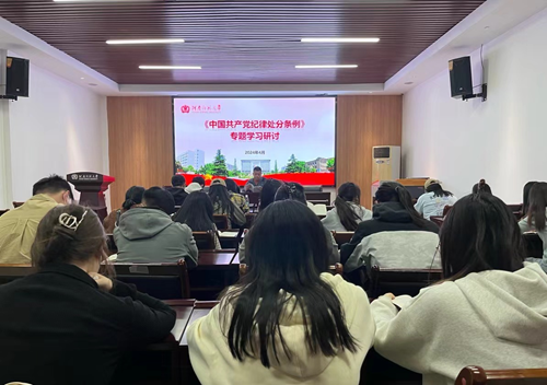 会上,支部书记领学了《中国共产党纪律处分条例》,重点阐述了条例的修订背景、主要内容和实践要求。同时要求支部党员切实用党规党纪校正思想、规范行为,把党纪学习教育各项任务落到实处。交流研讨环节,党员们结合自身学习和工作实际畅谈心得体会,积极参与讨论。通过学习,党员们更加明确了自己的责任和义务,与会党员表示,《中国共产党纪律处分条例》是规范党组织和党员行为的重要准则,对于保持党的先进性和纯洁性具有重要意义,要以党纪学习教育为契机,进一步提高政治站位,持续加强学习,不断锤炼党性、作风,发挥好先锋模范带头作用,共同推动学校、学院各项事业高质量发展。
