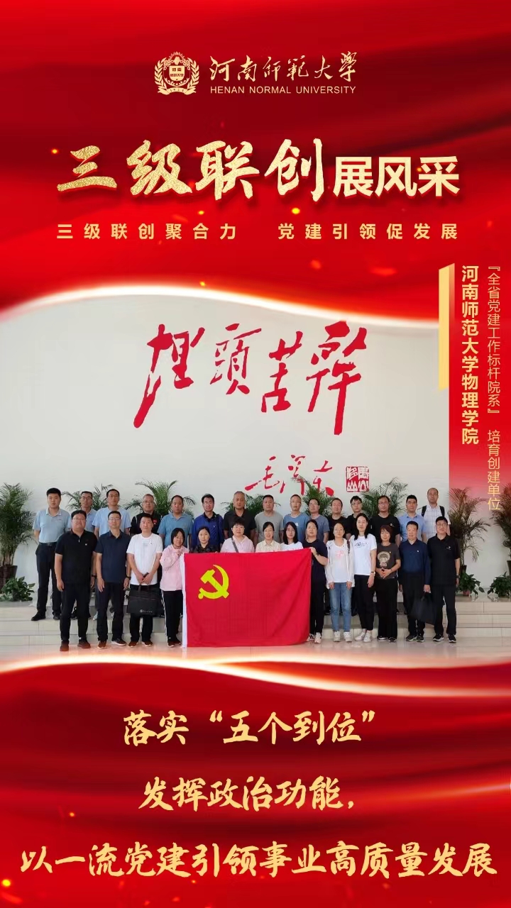 联创快评:作为河南省党建工作标杆院系,物理学院党委深入贯彻新时代党的建设总要求,对标“五个到位”,聚焦“一流学科”创建,构建以“履行三项责任,把握五条遵循,紧盯三个落实,提升四种力量,聚焦四大融合”为框架的“35344”多维党建工作总体布局,探索基层党委党建工作的新方法、新思路、新举措,以一流党建引领物理学院事业高质量发展。