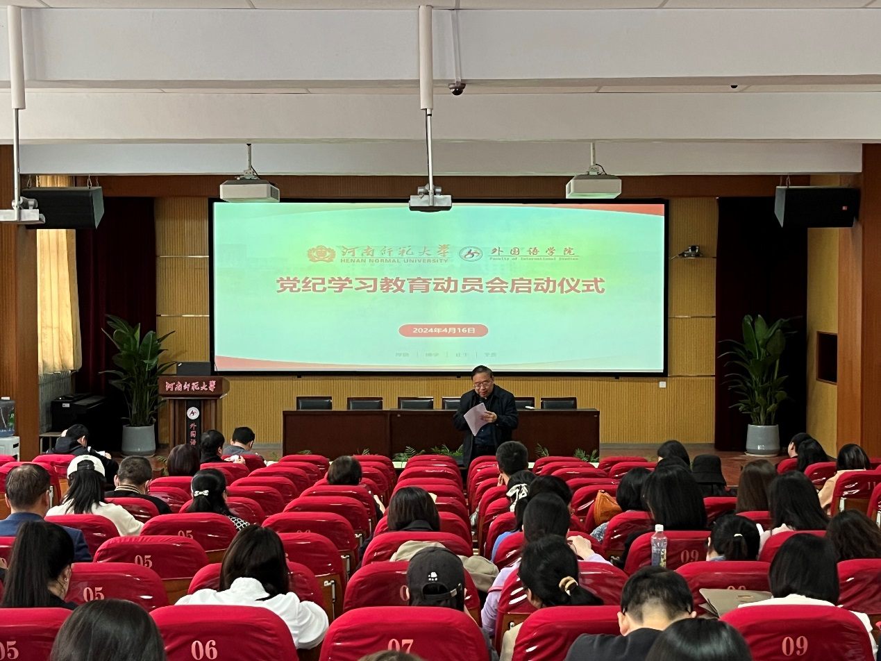 4月16日下午,外国语学院在学院报告厅召开党纪学习教育动员会。学院全体党员参会。党委书记赵成福主持会议并讲话。
