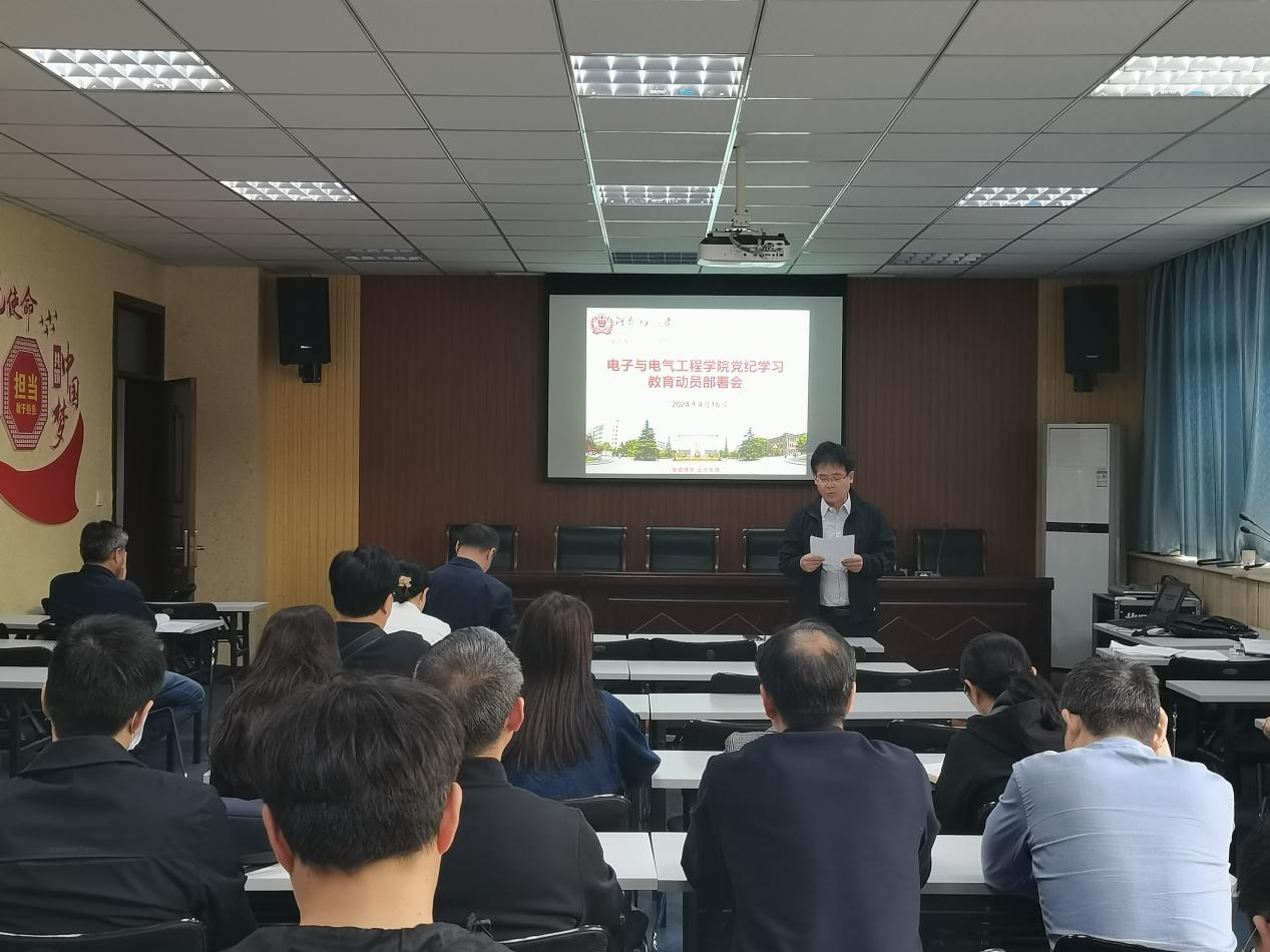 4月16日下午,电子与电气工程学院党纪学习教育动员会在学院教工之家召开。学院班子成员、科级干部、教师党员参加会议。会议由学院党委书记高飞主持。