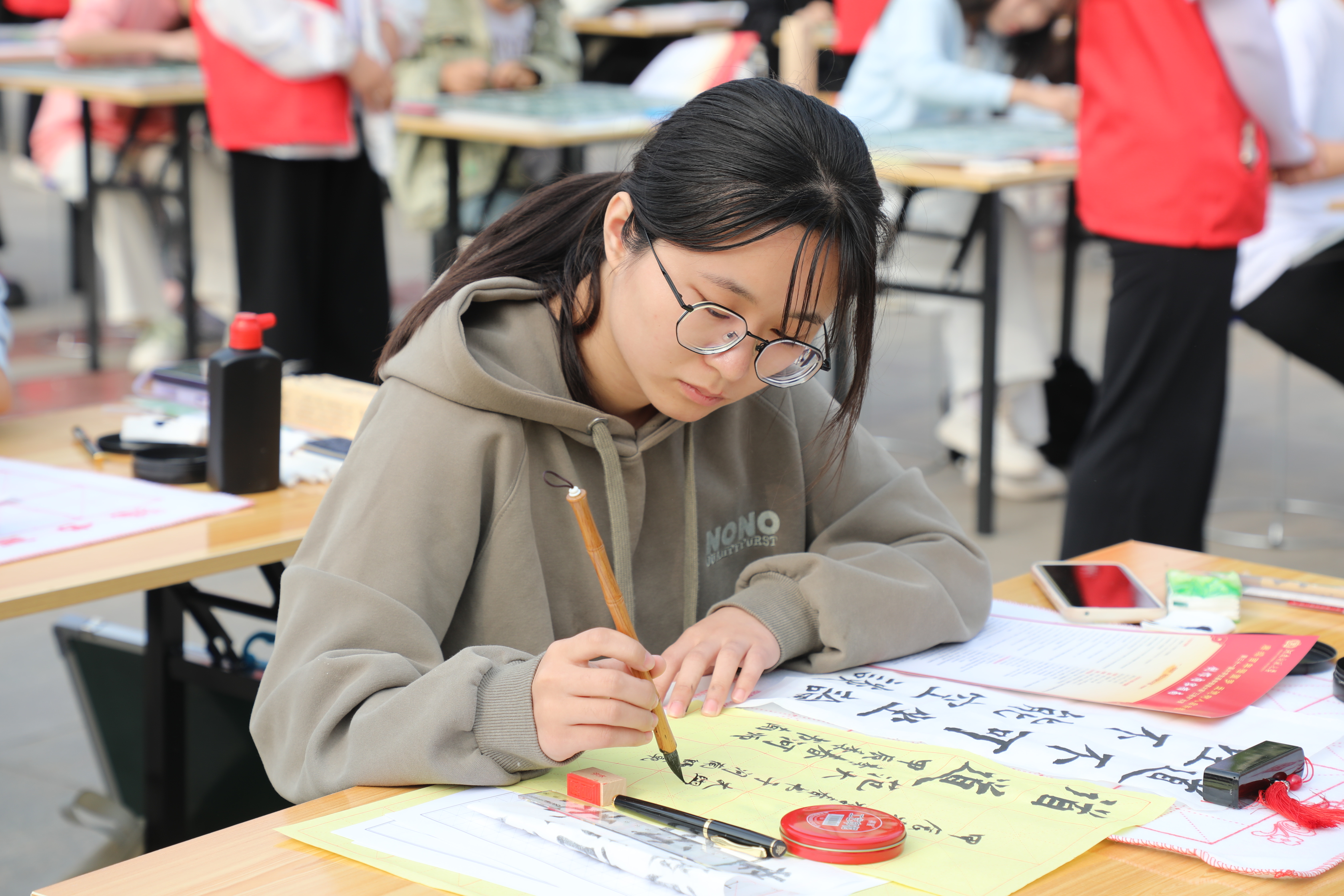 运墨收笔其道成,一撇一捺写人生。4月20日上午,我校第三十一届大学生基本技能大赛开幕式暨“三笔字”比赛在图书馆前广场举行。校党委副书记张尚字出席开幕式并致辞,相关职能部门负责人,各学院(部)党委(党总支)副书记、团委书记、参赛选手、志愿者参加开幕式。开幕式由党委学工部部长葛照金主持。