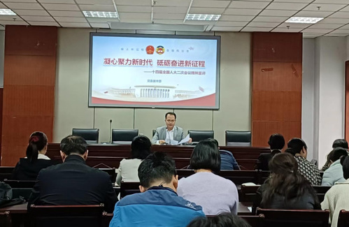 4月11日下午,在图书与档案信息中心二楼会议室,全体职工集中学习2024全国两会精神,中心党总支书记王文豪围绕“凝心聚力新时代砥砺奋进新征程”——十四届全国人大二次会议精神开展宣讲。