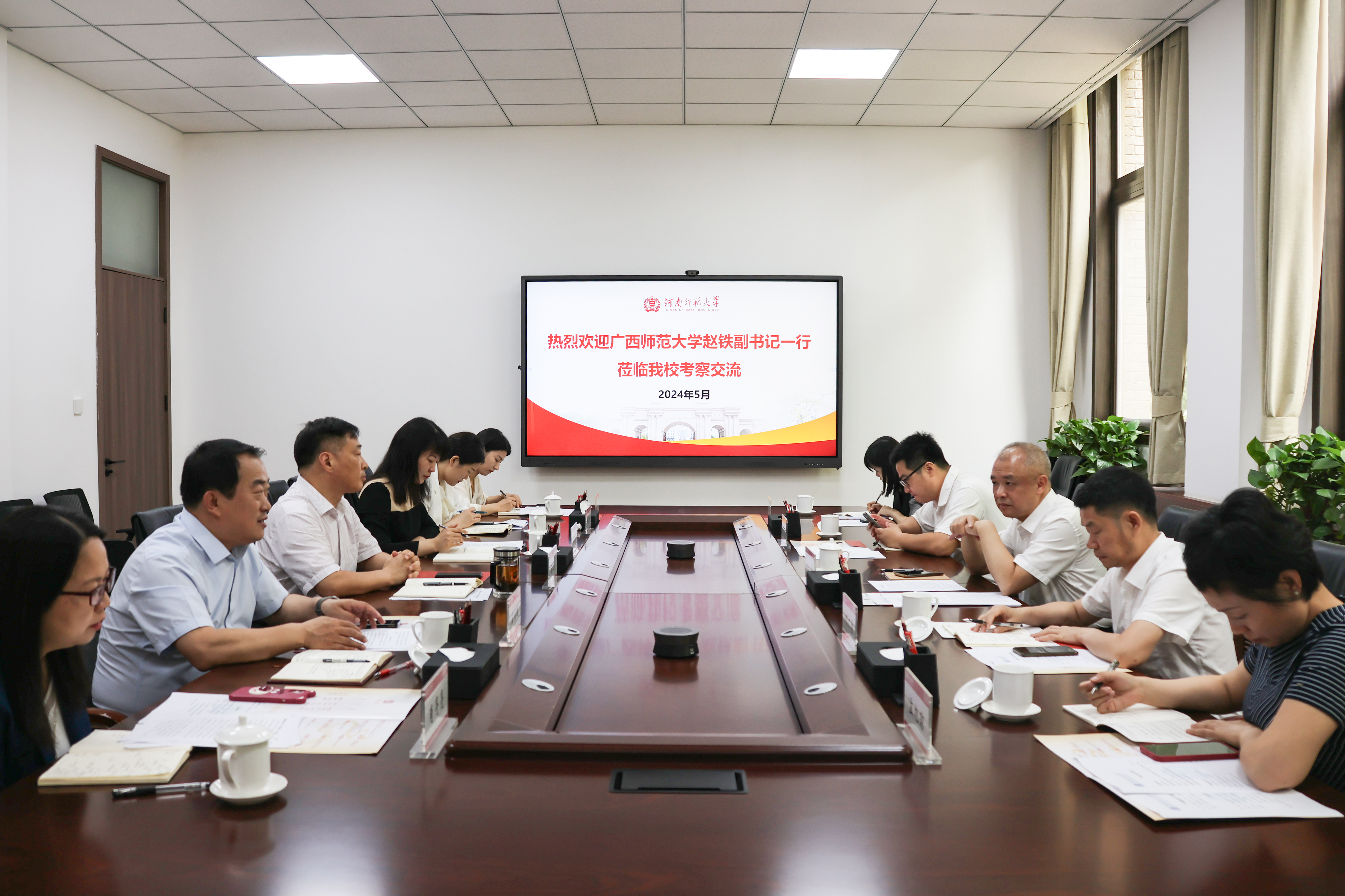 赵铁介绍了广西师范大学的建设发展情况,详细介绍了学校四度调整、六次更名、八次迁址的发展历史。他表示,两所学校都是有着悠久历史和光荣传统的师范院校,志同道合、砥砺同行,希望能够通过此次调研,进一步加强两校的合作交流。