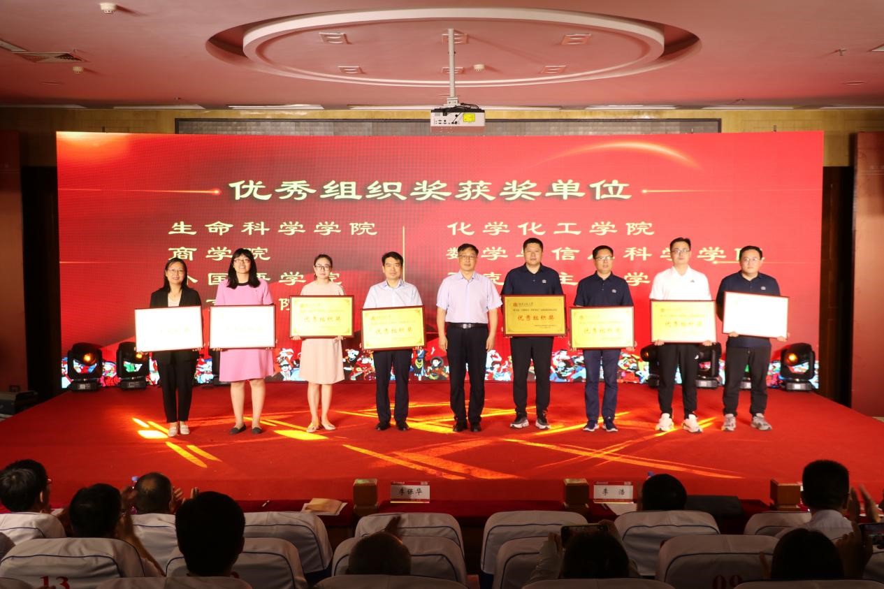 王玉良为本届活动优秀组织奖获奖单位颁奖。他指出,此次活动主题突出,内容丰富,形式多样,是我校加强各族学生交往交流交融的重要载体,是铸牢师生中华民族共同体意识的重要措施。就进一步做好民族团结教育工作,王玉良提出三点希望:一是希望广大同学坚定共同理想信念,切实铸牢中华民族共同体意识;二是希望各族师生增进交流交往交融,共同谱写民族团结进步新乐章;三是希望广大学生志存高远奋力拼搏,努力在实现中国梦中绽放青春。