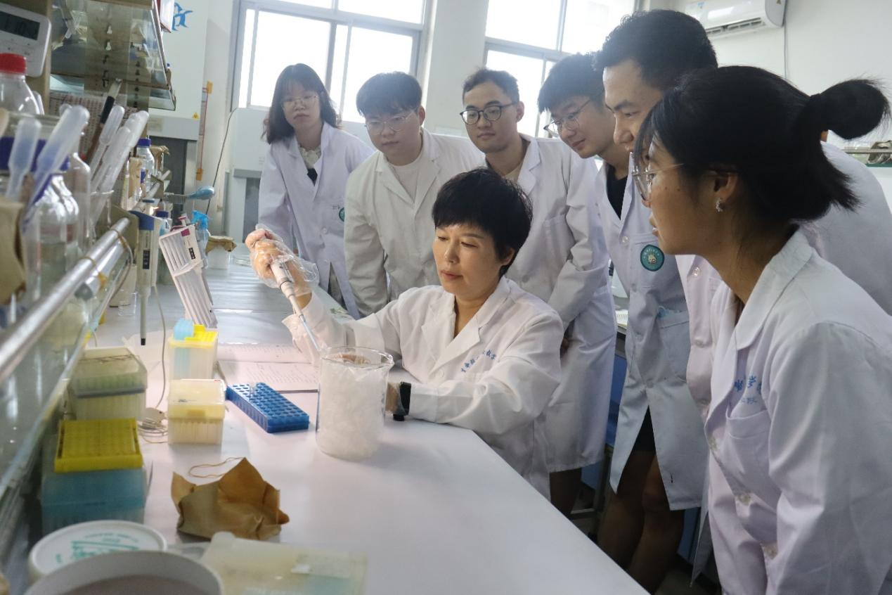 在担任大学教授角色的同时,董自梅也是河南省中学生生物学学科奥林匹克竞赛的指导老师。从中学生至博士生,董自梅指导的学生学段跨度非常大,但她早已将“因材施教”的理念揉进教学里,践于行动中。她认为,培养学生首先是培养他们的兴趣和好奇心,其次要培养他们发现问题、提出问题、分析并解决问题的能力。“能力是一辈子的事,终生受用!有了足够的能力,就可以克服和解决今后面临的各种困难。”董自梅坚信。对本硕博阶段硕士生和博士生的培养,董自梅认为“最重要的是有一个严谨、认真、诚实、精益求精的科研态度”。她常常给学生强调“要诚诚恳恳做人,踏踏实实做事”,以严谨的态度坚守科研底线。在硕士、博士研究生的科研训练上,董自梅重视对学生积极向上工作态度的培养,更注重对学生创新思维和创新能力的培育。每年暑假,她都穿梭在竞赛辅导、英才计划和科研指导的道路中不曾停歇,“累,并快乐着。”她嘴角挂着满意的笑容。