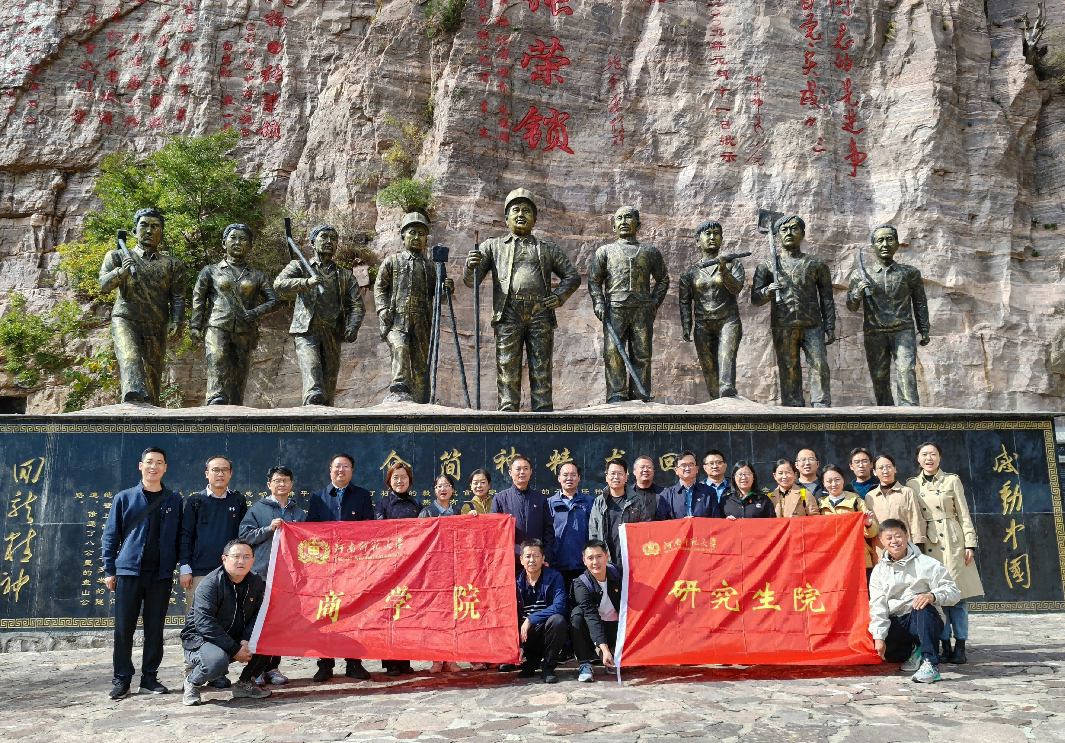 为进一步增强党组织的凝聚力和战斗力,推动党建与业务融合发展,10月19日,商学院党委与研究生院党支部联合开展“联学共建聚合力,聚焦内涵创一流”暨统计学博士点高质量建设主题党日活动。研究生院党支部成员,商学院领导班子成员、科级干部代表、统计学教研室骨干教师近三十人前往辉县回龙共赴红色学习之旅。