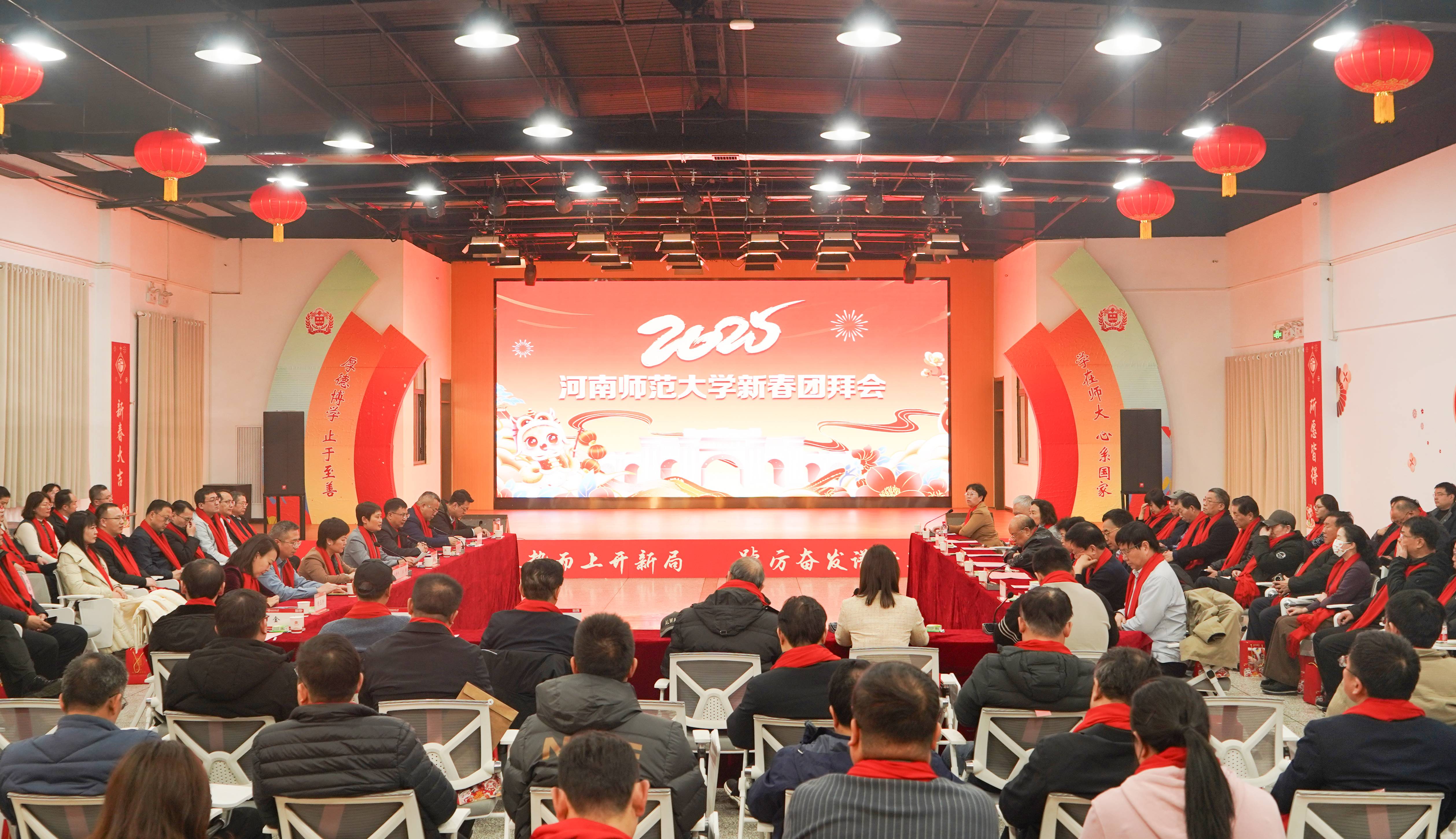团拜会上,校党委副书记张尚字通报了科技创建港建设情况。老领导周铁项书记,离退休教师代表渠桂荣教授、樊静教授、薛占熬教授,党外人士代表、知联会会长赵黎波教授,高层次人才代表杨金民教授、刘伍明教授、席来旺教授、江潮教授、金虎教授,校关工委副主任赵长新,青年教师代表梁云真副教授,学生代表、生命科学学院2022级博士研究生李欣雷依次发言,回顾过去一年的工作学习和取得的成绩,表达了对学校未来发展的深切祝福。师生登台献艺,通过歌舞、器乐、戏曲等形式,展现了对新一年的美好期待。最后,校工会邀请校书画协会向与会人员赠送春联,送上新年祝福。