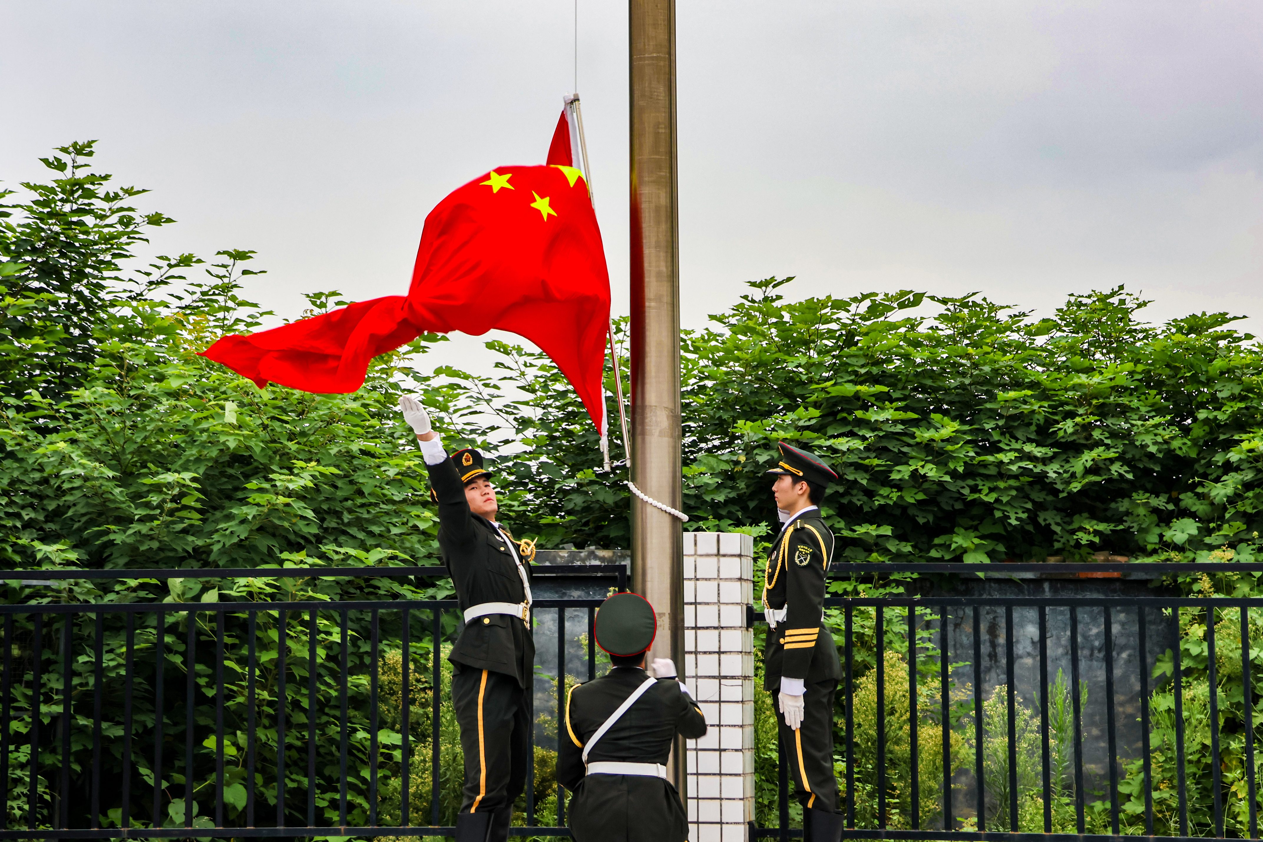 上午8时整,典礼在雄壮的国歌声中正式开始,全场师生肃立齐唱,激昂旋律回荡运动场上空。