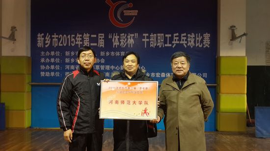 12月26-27日,由新乡市体育局、新乡市体育总会主办、新乡市乒乓球协会承办的新乡市2015年第二届 “体彩杯”干部职工乒乓球比赛在市中心业余体校球类馆举行。新乡市各县(市)区、市属行政事业单位、人民团体、大专院校及国家、省驻新单位组队参加了比赛。