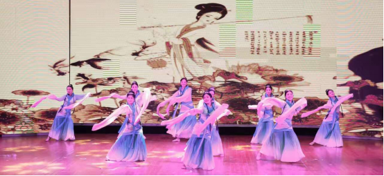 东方舞蹈协会成立于2014年,由一群热爱生活、热爱舞蹈的女教职工组织而成。协会自成立以来,以兴趣爱好为基础,以舞蹈学习、瑜伽调息为核心,本着树立新一代女工蓬勃向上的精神风貌的宗旨,积极开展各项舞蹈类活动,成为我校一个有特色、有活力的协会。该协会目前有在册会员30余人,她们来自校内各教学、管理岗位。此次晚会,闫娟等9位老师表演了一曲《采薇舞》,柔若无骨,似清风徐来,“翘袖折腰”之舞姿体现出女性的柔美内敛之美,浓郁的古典韵味更是将整台晚会推向高潮!除此之外,该协会还参演了校医院和机关二总支的元旦晚会,爵士舞《彩色的黑》赢得了现场观众的阵阵掌声!
