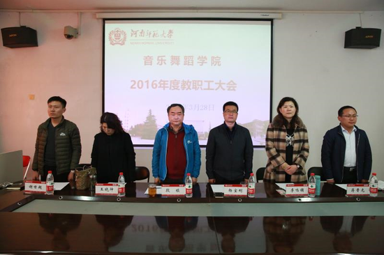 3月28日下午,音乐舞蹈学院2016年度教职工大会在会议室召开,学院领导班子及全体教职工参加本次大会,大会由院党委副书记蒋晋光主持。