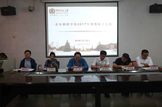 5月8日下午,音乐舞蹈学院2017年度教职工大会在会议室召开,学院领导班子及全体教职工参加本次大会,大会由院工会主席、党委副书记蒋晋光主持。