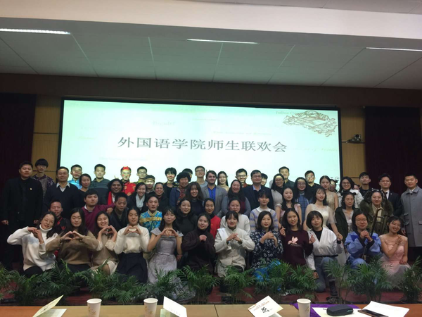 莺歌燕舞辞旧岁,师生同台贺新年。我院工会组织师生开展2018年元旦嘉年华跨年联欢会,在我院报告厅举行。众多师生齐聚一堂,肩并肩迎接崭新的2019年。外国语学院党委书记宋霞老师、院长梁晓冬老师、工会主席贾建嵩老师、副书记曹崇老师、副院长刘国兵老师出席活动,以及百余名师生共赏戏剧。