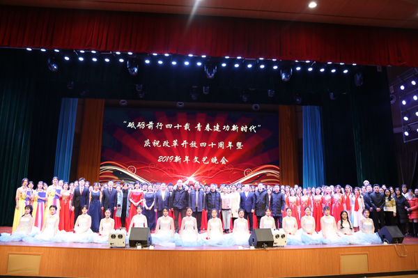 九州日升辞旧岁,四海潮起报春来。12月28日,“砥砺前行四十载,青春建功新时代”伟德官网下载苹果版新联学院庆祝改革开放四十周年暨2019新年文艺晚会在多功能报告厅隆重举行。学院领导张永胜、金绪泽、李浩、张长伟、王虎出席晚会。全体教职工、家属和学生代表近500人一同观看了演出。