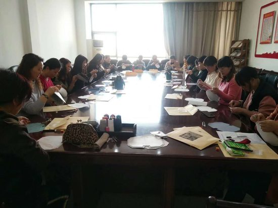 本次活动由美术学院张艳老师担任主讲,分为10个小组展开学习。张艳老师在展示了各类精美手工艺品后,结合视频展开教学,对针线的使用和针法进行现场指导。女教工们认真学习针织技巧,积极地与张艳老师探讨自己的疑惑。不同小组间相互交流经验,共同学习,互帮互助。经过大家的努力,各个小组制作出了独具中国传统特色的针织手提包和各类精美的手工艺品。