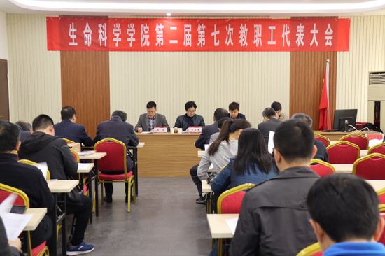 随后,会议听取了院长余国营做的《强化责任担当狠抓任务落实扎实推进学院各项工作取得新进展》工作报告。报告从教学工作、学位与研究生教育、学科建设与科研、师资队伍建设、公用实验平台及标本馆、国培计划、工会工作、实验室安全、学生教育与管理、党的建设、宣传思想工作等十个方面工作对学院2018年工作进行了回顾,对2019年工作的总体思路和主要任务向代表们进行了汇报。