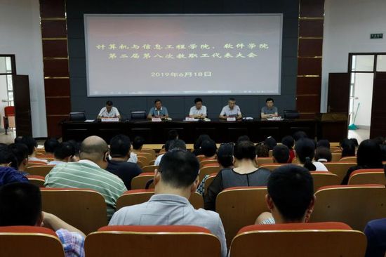 6月18日下午,计算机与信息工程学院、软件学院第二届第八次教职工代表大会在学院217报告厅召开。各学院党政领导及教职工代表80余人参加了本次会议,会议由计算机与信息工程学院党委副书记、工会主席张东亮主持。