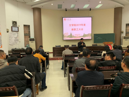 11月5日下午,文学院教职工代表大会在学院报告厅召开。学院党政领导及教职工60余人参加了本次会议,会议由文学院党委副书记、工会主席高飞主持。