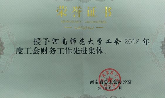 校工会喜获河南省总工会“2018年度工会财务工作先进集体”荣誉称号