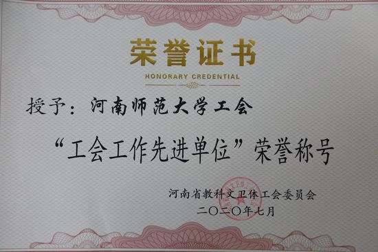 近日,河南省教科文卫体工会委员会表彰了一批在2019年全省教科文卫体工会系统中,工会工作取得突出成绩的先进集体和先进个人,我校荣获多项集体和个人荣誉。