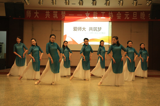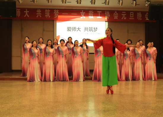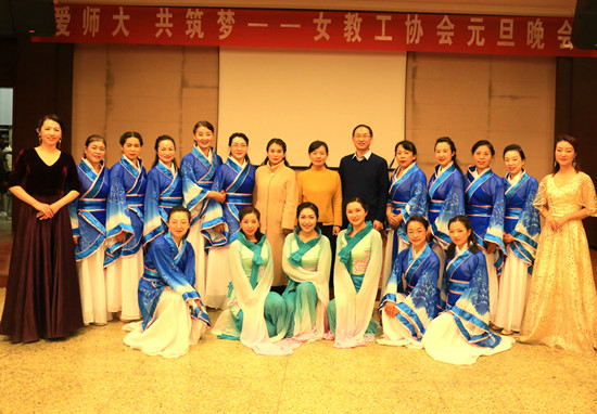 12月27日晚,我校东方舞蹈协会、60后女教师合唱团联袂举办的“爱师大,共筑梦”2021年元旦晚会在文轩阁三楼教职工活动中心举行,校工会副主席胡世巧、王鹏祥、校艺委副主任罗强等领导老师参加了晚会。