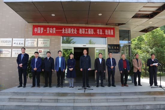 翰墨丹青歌盛世、风雨同舟颂党恩。为喜迎中国共产党建党100周年,4月28日,由校工会主办,美术学院承办,教职工书画协会、摄影协会协办的“中国梦·劳动美——永远跟党走” 摄影、书法、绘画展在美术学院一楼展厅开幕。校党委副书记、工会主席梅宪宾参加开幕式并致辞,校工会副主席王俊杰主持,美术学院、书画协会、摄影协会及教职工代表、学生代表参加开幕式并参观展览。