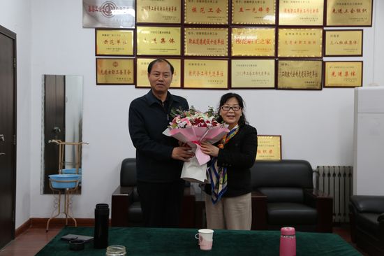 10月7日校工会在校工会会议室举办教师荣退仪式,欢送孙玉珍同志光荣退休。校工会领导班子、全体工作人员参加仪式。校党委副书记、工会主席梅宪宾主持了仪式。