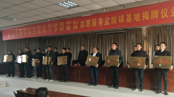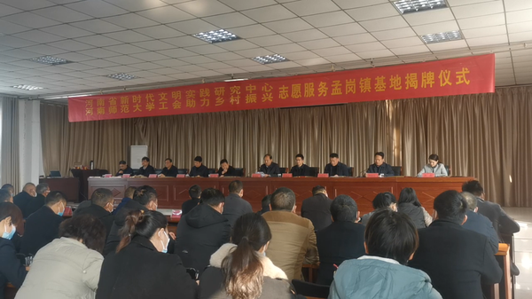 在揭牌仪式上,梅宪宾表示,基地将发挥高校人才优势和智力优势,紧扣乡村振兴战略实施、政务服务改革、基层社会治理等地方党委和政府重点任务,围绕“服务老、养育小、让中青年发展好”群众最关切的问题,“打造务实管用的志愿服务项目,深化‘我为群众办实事’实践活动,助力孟岗镇脱贫攻坚成果巩固拓展和乡村振兴事业。”
