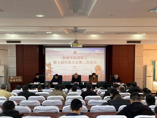 3月1日下午,物理院教职工第七届代表大会第二次会议在物理南楼二楼报告厅召开。学院领导陈明银、赵旭、焦照勇、赵凯、夏从新出席会议,包括35名教代会正式代表在内的全体在校教职员工参加了本次大会。会议由学院工会主席、副院长赵凯主持。