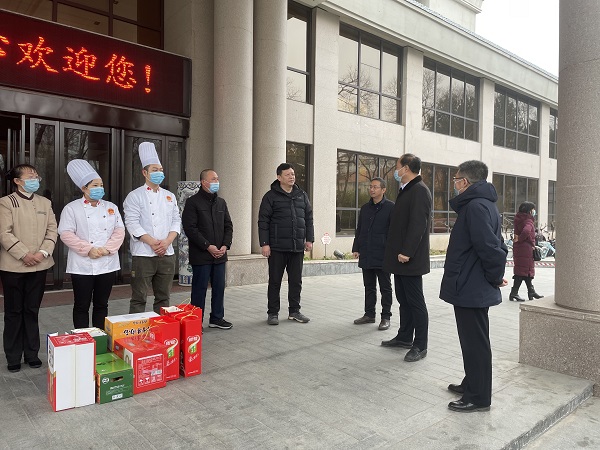 校领导一行先后来到保卫处、后勤管理处、阳光生活汇施工现场、学术交流中心、附中、校医院、平原湖校区、基建处、校总值班室等单位进行慰问。校领导详细询问了各单位值班人员安排、来电来访处理、应急预案处置等情况,并叮嘱相关值班人员一定要做好值班值守、信息上报和突发事件处置等工作。校领导详细了解了相关部门春节假期的安全保卫、后勤保障、餐饮住宿、疫情防控、医疗服务等工作安排和值班值守情况,并代表学校向坚守工作岗位的干部职工表示慰问,对大家的爱岗敬业精神表示赞许,叮嘱他们在做好疫情防控的同时加强安全防范,保障服务质量,确保寒假期间学校各项工作的平稳运转和校园的安全稳定。
